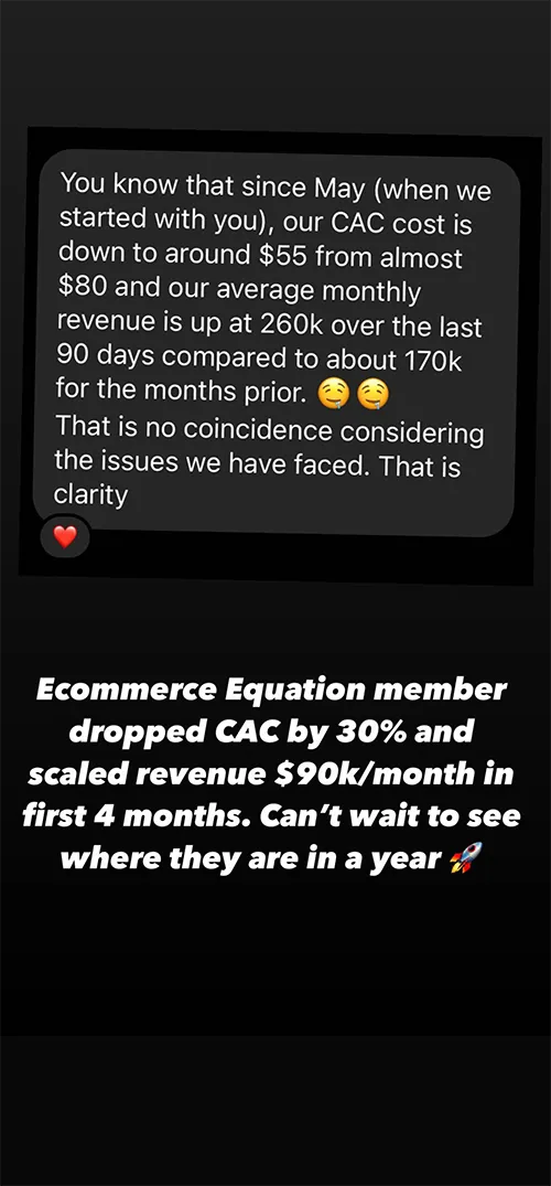 “With the help of Ecommerce Equation, we’ve scaled up from $30,000 to $300,000 in only 3 months.”